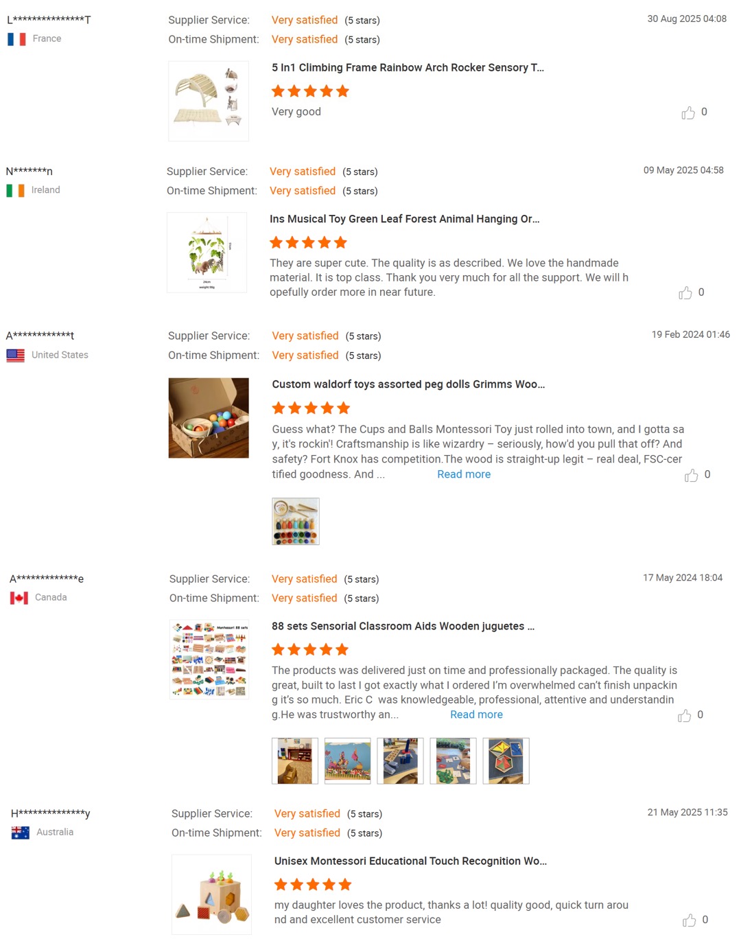 Our team has more than ten years ofexperience, serving customers globally,with a primary focus on markets in Europe, America, Australia, andCanada. We serve famous wooden toy brands, ofering exceptional supply chain services. We folow the principle of” We know you “,helping totransform your ideas into products.